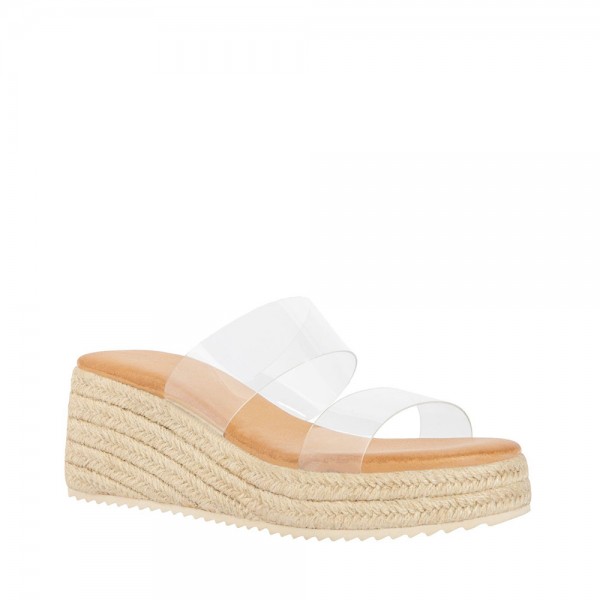 Sandalia alpargata plataforma. Detalle doble hebilla. Punta abierta. Destanolada. Primavera verano.-..
