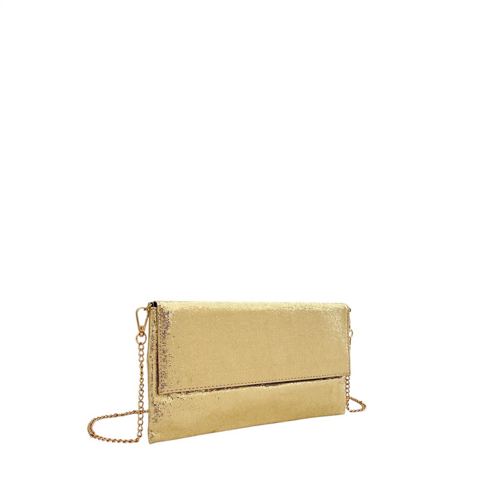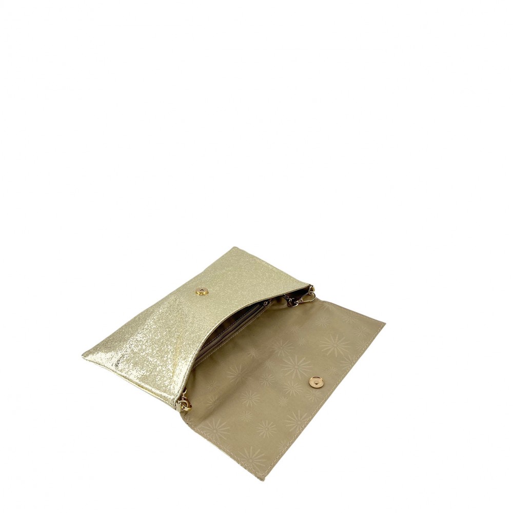 Deslumbra en cualquier ocasión con este sofisticado bolso de mano estilo clutch. El diseño presenta una textura brillante que captura la luz de manera elegante, complementada por una cadena metálica que ofrece versatilidad en su uso, ya sea como bolso de mano o al hombro. El interior está cuidadosamente forrado con un material resistente con un sutil patrón decorativo, proporcionando protección para tus pertenencias. Este accesorio combina perfectamente la funcionalidad con el estilo, siendo ideal para eventos especiales, salidas nocturnas o cualquier ocasión que requiera un toque de elegancia. Su tamaño compacto es perfecto para llevar los elementos esenciales, mientras que su diseño atemporal asegura que permanecerá en tendencia temporada tras temporada. El cierre seguro mantiene tus pertenencias protegidas, mientras que su construcción de calidad garantiza durabilidad sin comprometer el estilo.